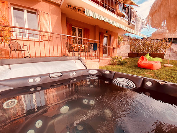 Die Gäste haben Zugang zum Whirlpool Jacuzzi im Garten;