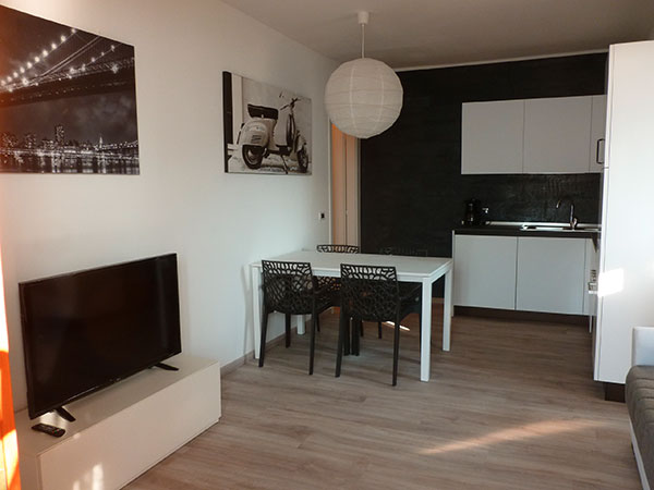 - wohnzimmer mit Schlafcouch, Sat-TV und Ausgang zur privaten Terrasse und zum Garten;