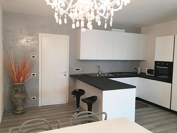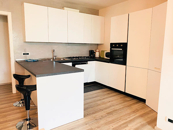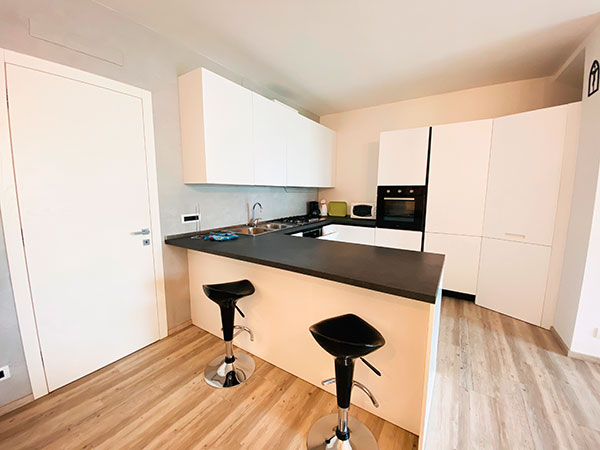 - cucina attrezzata con frigo, freezer, forno, lavastoviglie, forno microoonde, melitta, bollitore elettrico e utensili;