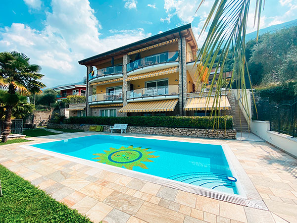 L'appartamento "Sole" facente parte di una villa con piscina e giardino privato, si trova in posizione tranquilla e soleggiata a pochi minuti dalla spiaggia e dal centro del paese, comodo ai servizi. Posto al piano terra è totalmente nuovo, moderno, molto spazioso, accogliente, con finiture di alto livello, terrazza e giardino privato da cui si può godere una meravigliosa vista lago.