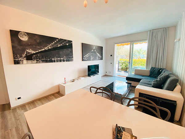 - ampio soggiorno con divano letto, TV-Sat e con uscita nel terrazzo e nel giardino privato;
